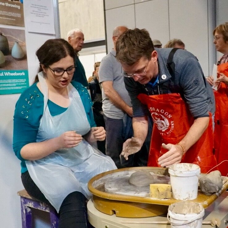 In May 2019, Sundragon pottery did demonstrations at the Makers Central event in Birmingham. We offered people a hands-on experience to throw their first bowl. I was pleased to take part in this as it was a very satisfying activity!