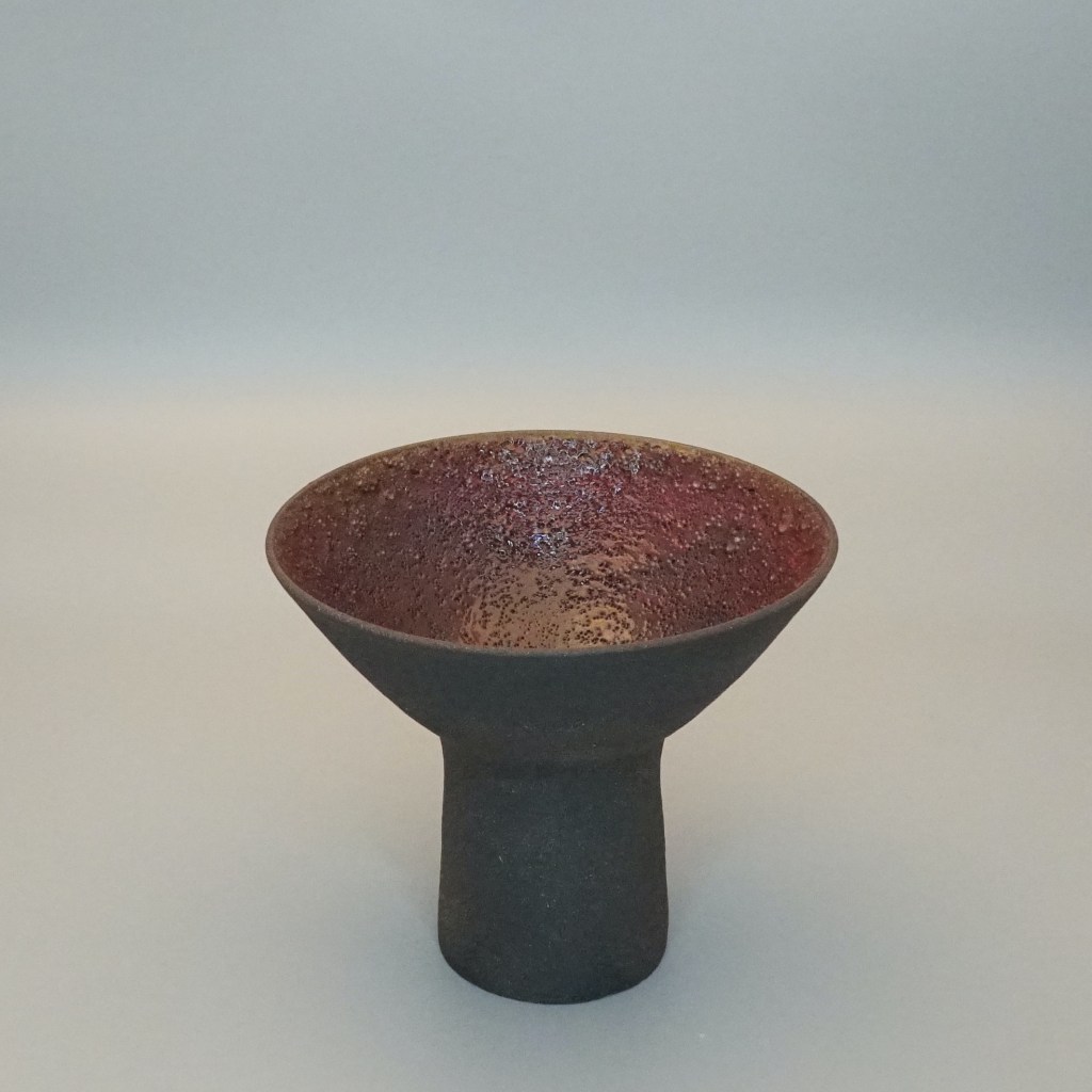 The glaze, a red commercial glaze from Terracolor, reacted during the firing with the oxides in the clay and bubbled, creating an effect that reminded me of my visits to the Teide volcan in Tenerife island, and the caldera volcan in the Reunion island.