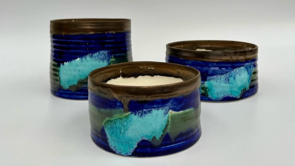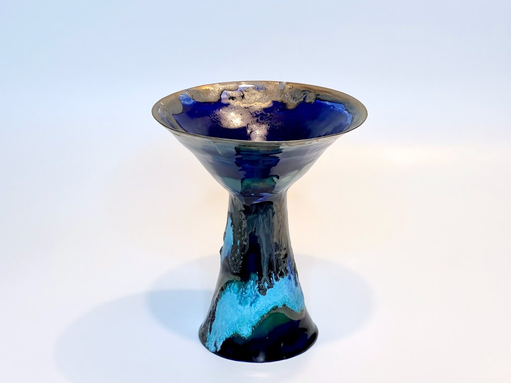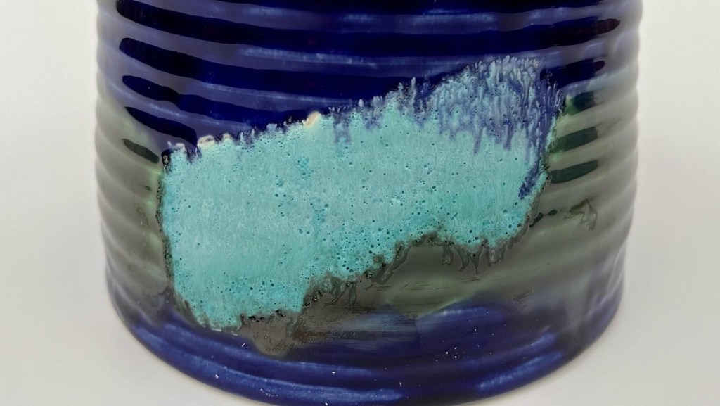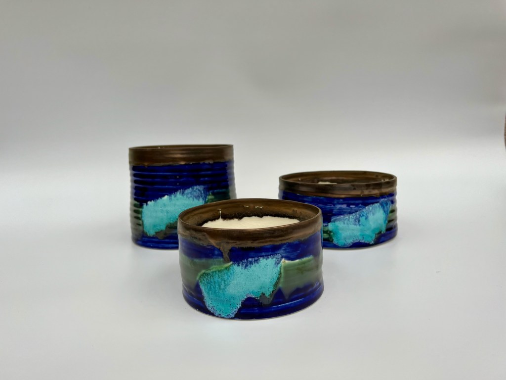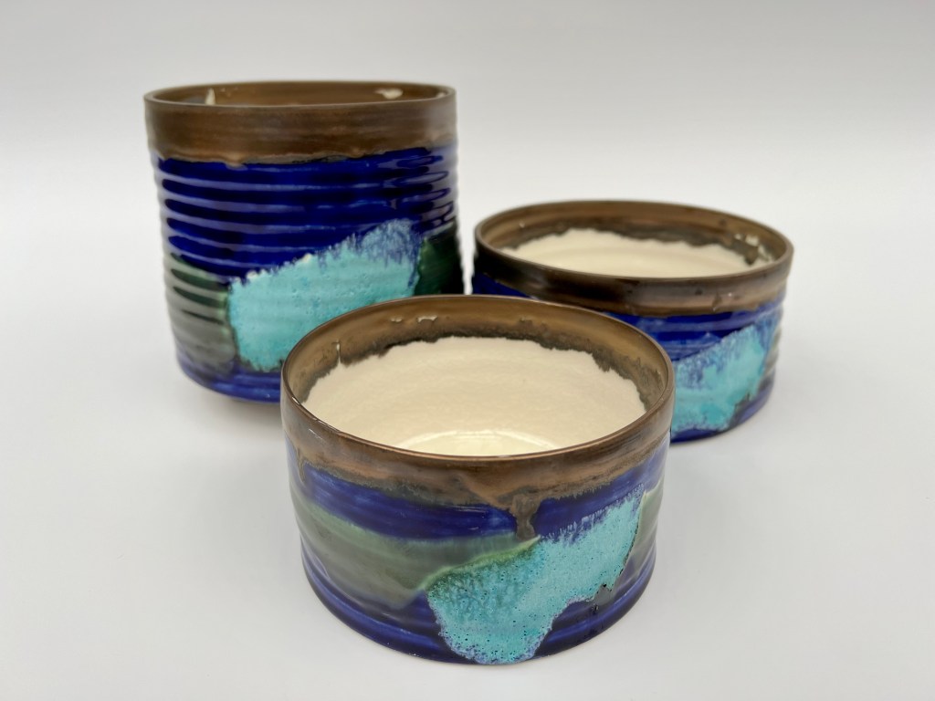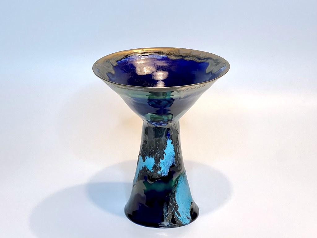 The vessels were decorated combining new glazes prepared in my studio from raw materials and oxides: two islandic glazes blue and green from Kristy Adam, gold metallic glaze from John Britt, volcanic turquoise and crackle glazes from Linda Bloomfield.