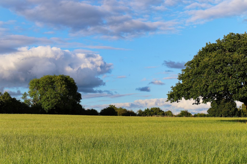 Wednesday evening, we went for a walk with the dogs in the fields above our house. The light was so good that I could not resist bringing the camera with me. I love the pastel colour of the clouds, the green of the grass, and the warm light in the wheat.
