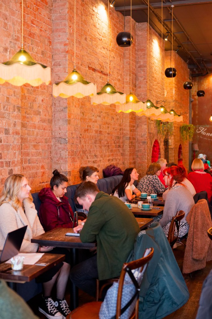 I made a stop at 200 Degrees Coffee on 21-23 Colmore Row to enjoy a great long coffee and a cheese and tomato toastie. The red brick wall and the alignment of lights created an interesting lighting effect on the customers.