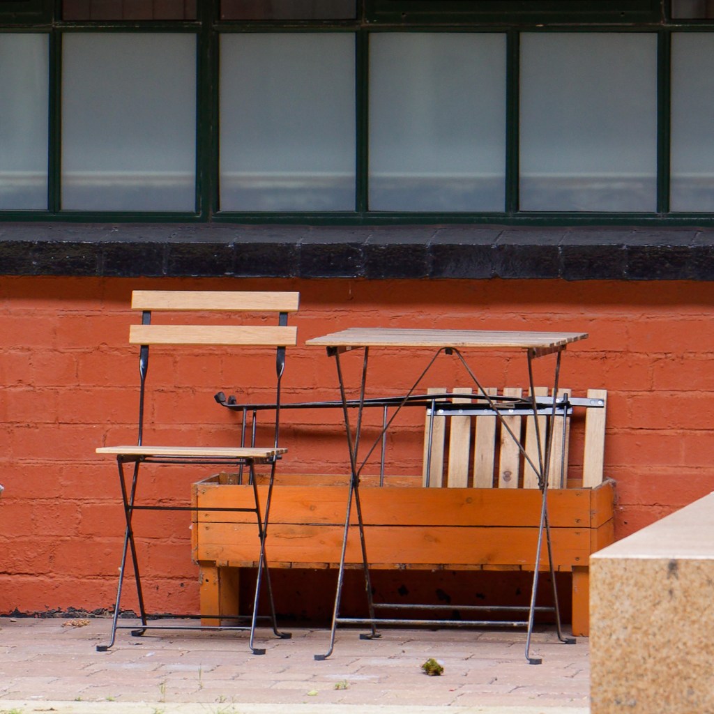 Taking a peek into a courtyard, I found this chair and table that caught my attention.